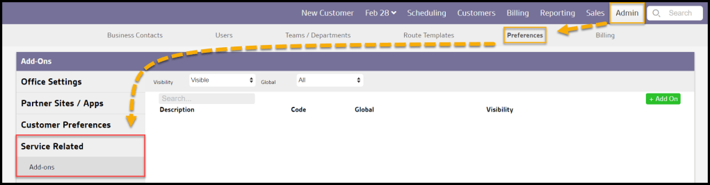 - Visibility: Determine if the add-on is visible in FieldRoutes or not. An Add-on cannot be deleted because it would affect any previous invoices the add-on is applied to, but it can be hidden from being available in PestRoutes.