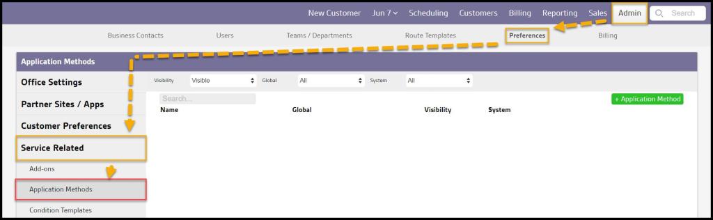 Admin > Preferences > Service Related > Application Methods.