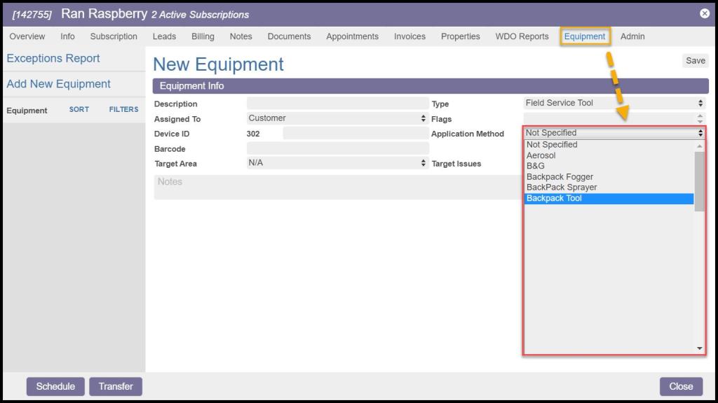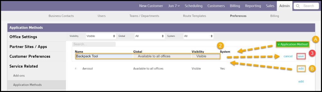 Application methods are used in the equipment tab in the Customer Card and the mobile applications to describe the method of how the tool, equipment, or chemical will be applied to the worksite.