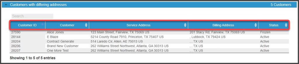 Customers with Differing Addresses