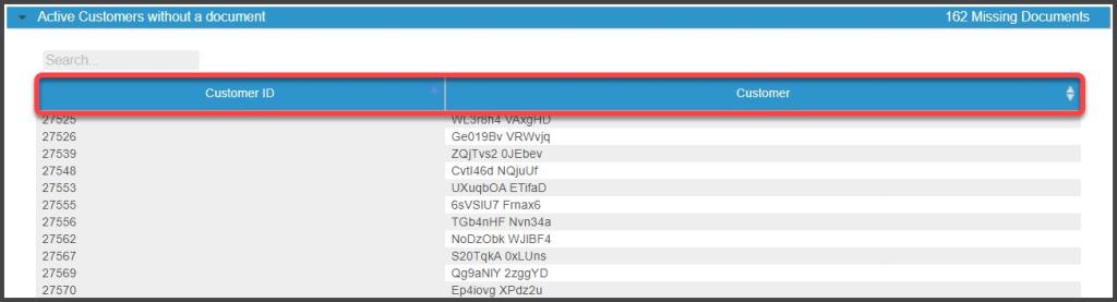 - Active Customers without a Document