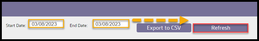 Once the date span is set, select the Refresh button to return the report results.