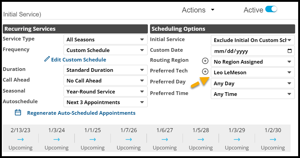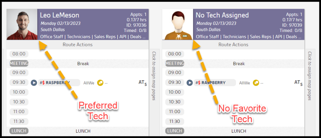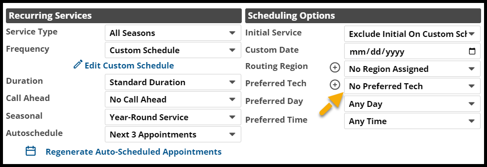 When scheduling future appointments, the software considers whether the customer has a Preferred Tech.