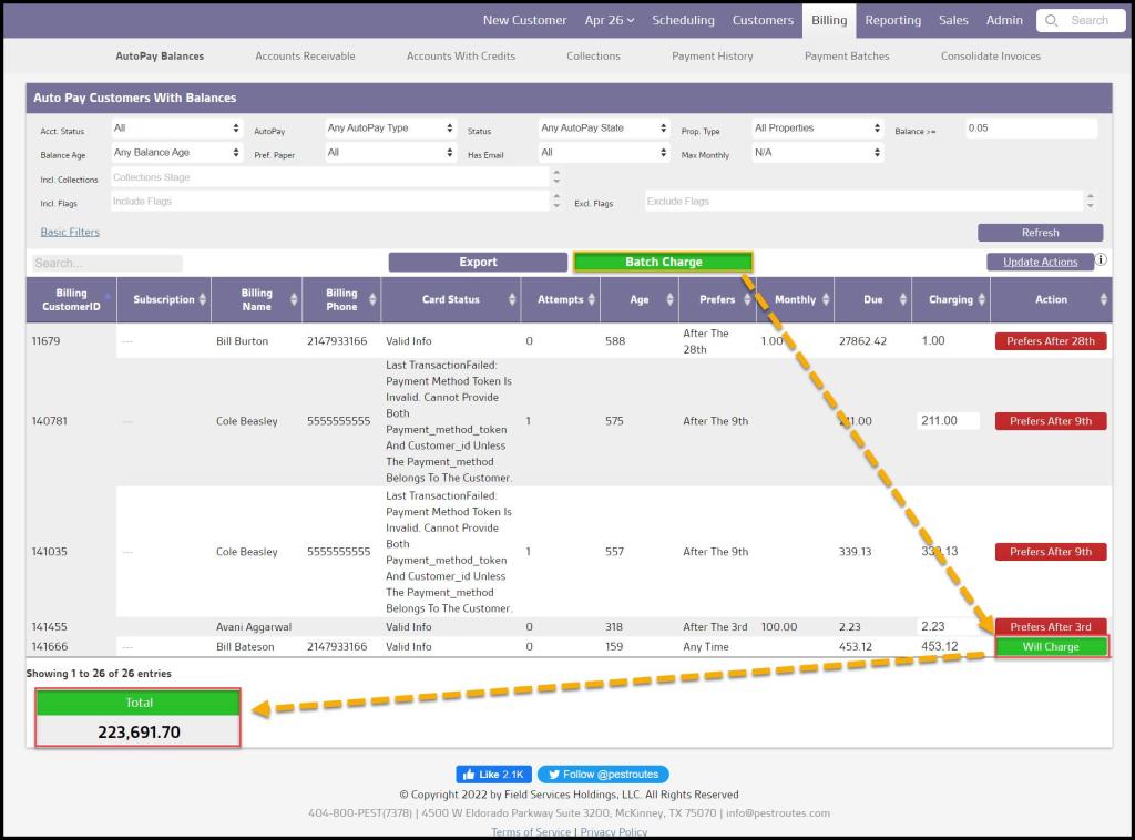 The AutoPay Balances Report tool allows those tasked with billing to batch charge all AutoPay customers scheduled for payment as a group.