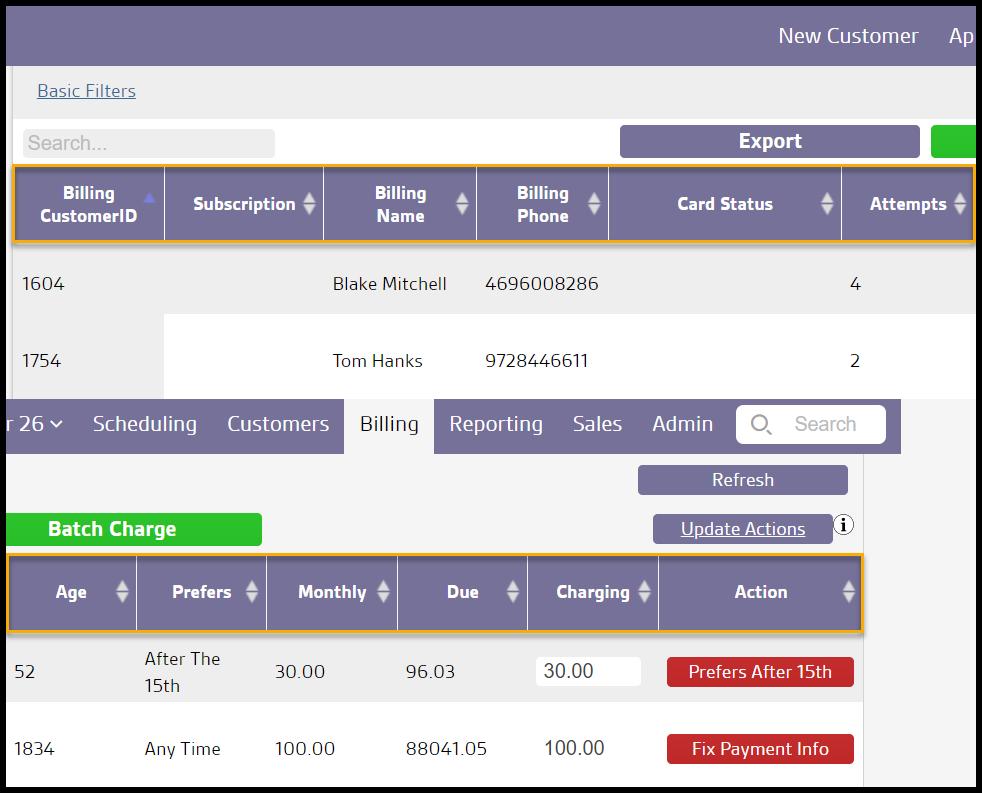 - Has Max Monthly: Filter by whether the customer has a designated Max Monthly Charge under the Customer Card > Billing > Billing Info section:
