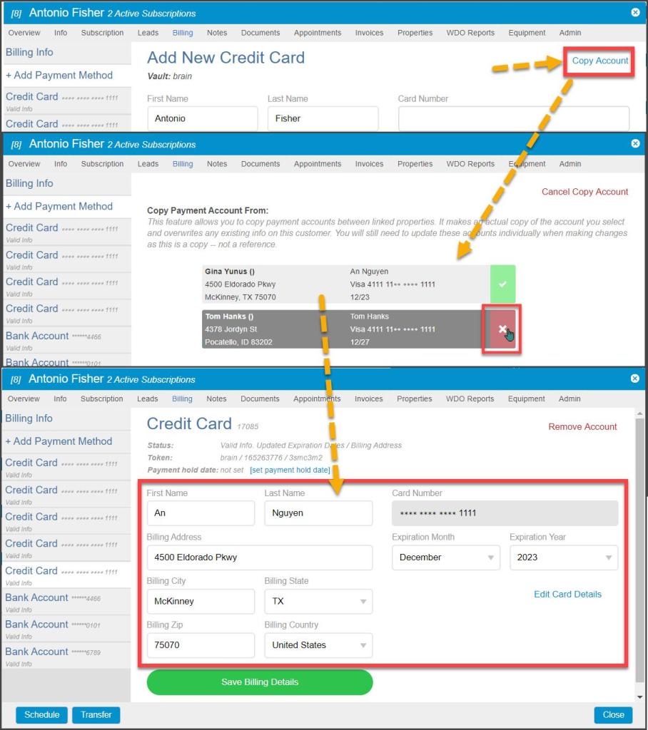 Overwrite Current Billing Info from a Linked Property