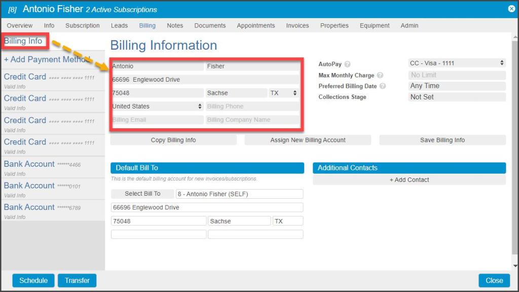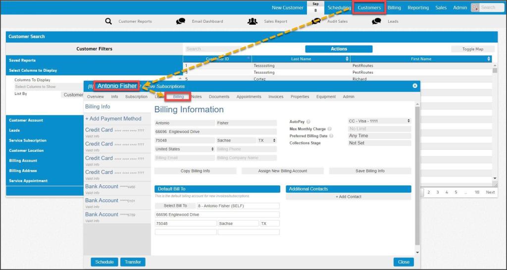 Accessing the Customer Card > Billing Tab