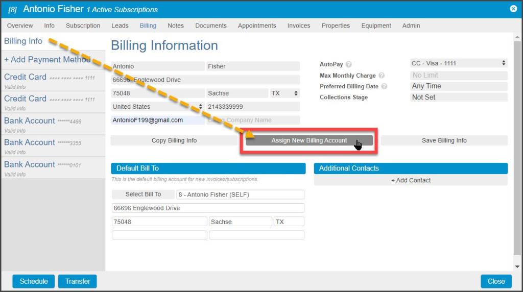 Assign New Billing Account
