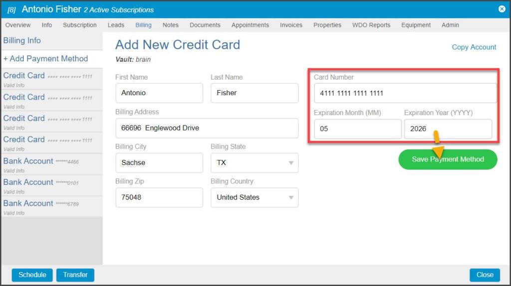 Enter the credit card number and the expiration date, then select Save Payment Method.