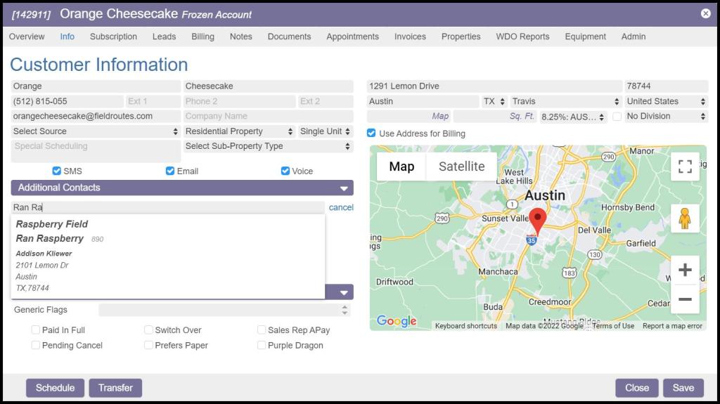 - Note: Contact types can be created and edited under Admin > Preferences > Customer Preferences > Additional Contact Types.