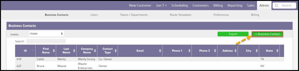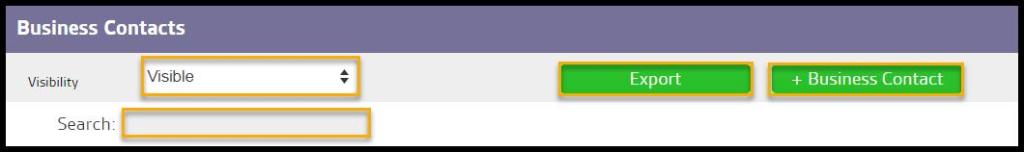 To add a new business contact, click on the green + Business Contact button in the top right corner.