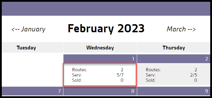 Each day on the calendar will display useful information about the routes on that day.