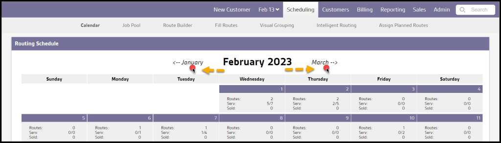 Toggling the Calendar’s Month on the Routing Schedule