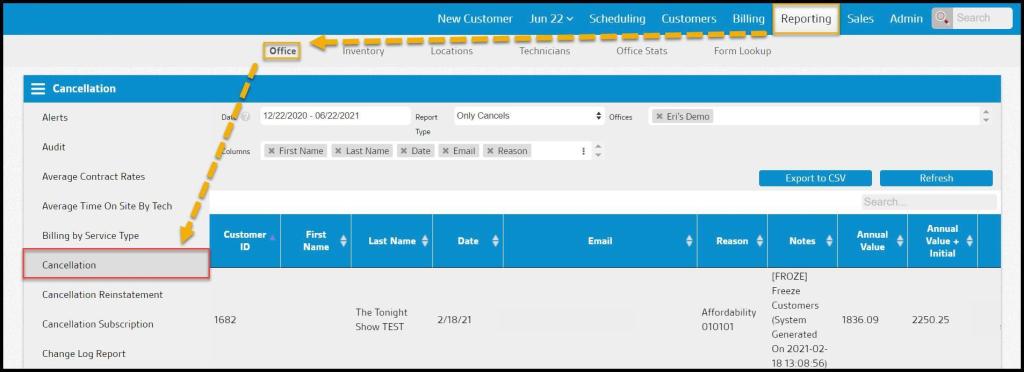 Reporting > Office Reporting > Cancellation