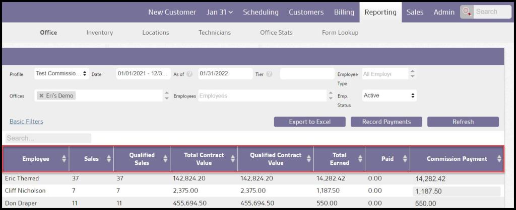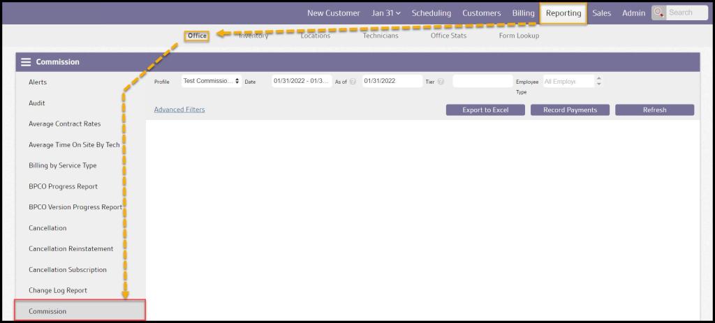 Reporting > Office > Commission