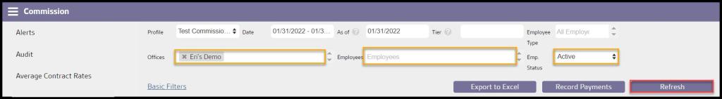 Once the commission profiles and commission rates are established, the user can pull commissions for each of their profiles.