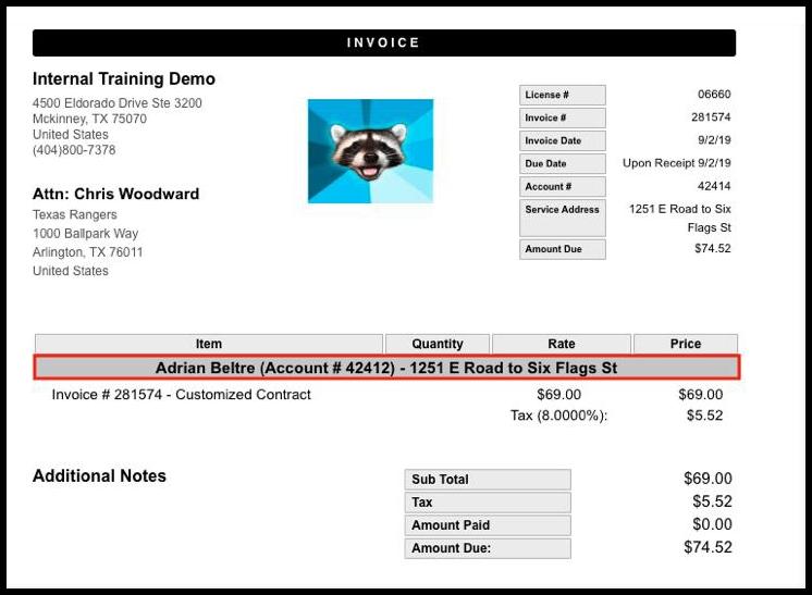 Invoices and account statements will include the property name, account number, and service address associated with the invoice items.