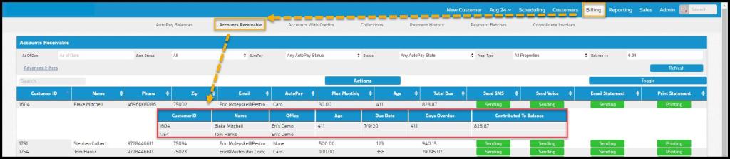 The user can now view all invoices a customer is responsible for from within Accounts Receivable by clicking on the customer name.