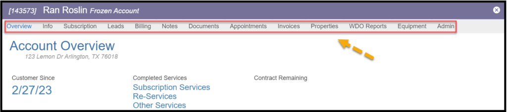 These tabs are used to manage the Customer account. See additional Customer user guides for details.