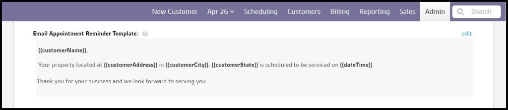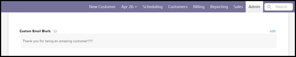 When a scheduled service is completed for a customer, they receive a completed Service Follow-up Email. This field allows the user to customize what’s in the body of that email.