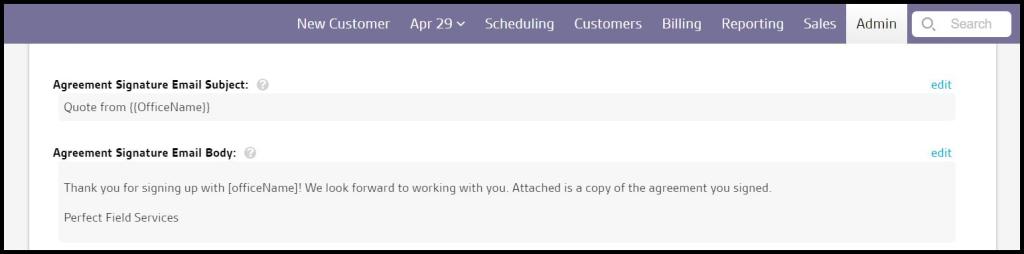 After a customer signs an agreement, they will receive a copy of that agreement along with the Welcome Letter. The Welcome Letter includes the salutation. The Welcome Letter can be edited under: