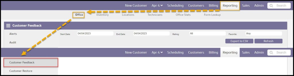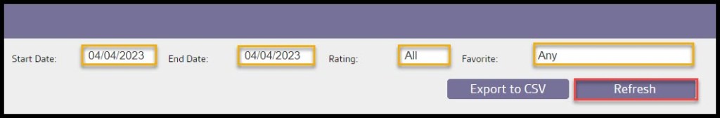 Export the Customer Feedback Report as a CSV file by selecting Export to CSV.
