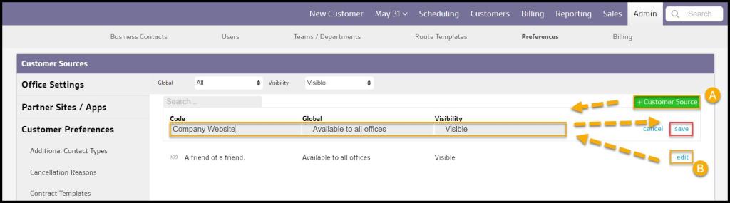 - Global: Determine if the Customer Source will be visible to the user’s office or to all offices for users with multiple offices.