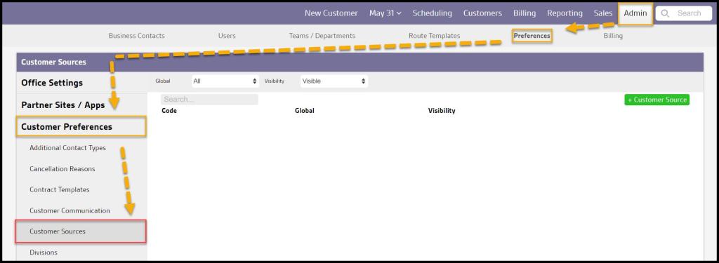 Admin > Preferences > Customer Preferences > Customer Sources.