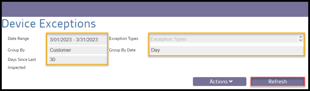 When a device is marked as an exception: the technician marked the equipment as removed, replaced, or skipped during the service, it will be recorded in the Device Exception Report.