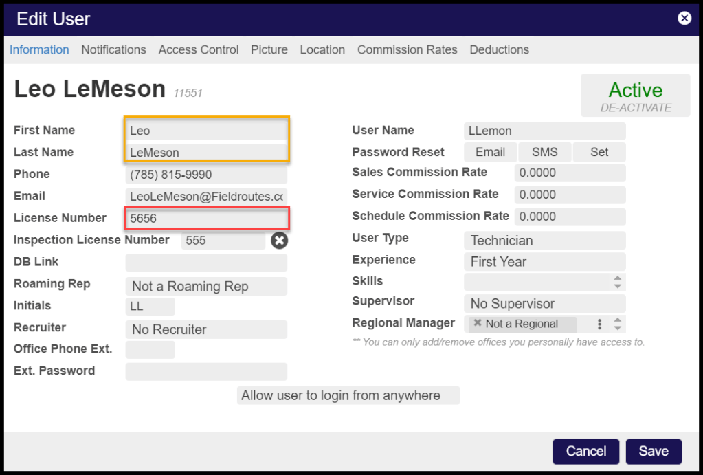 To show the technician name and license number on the diagram, select Show tech name and license # on diagram.