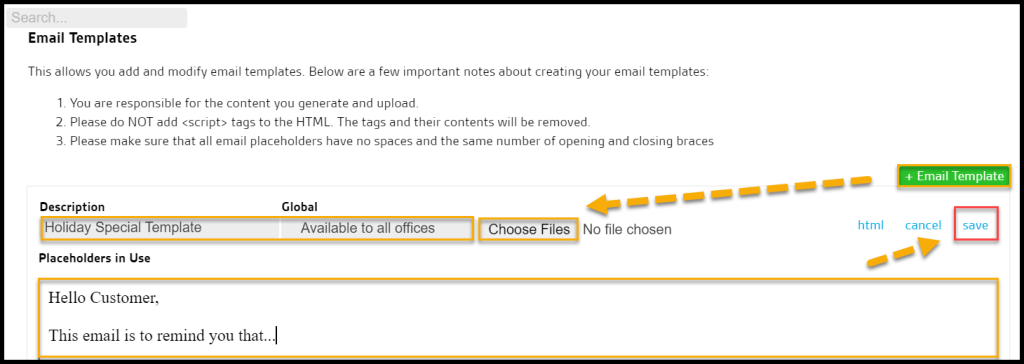 - Global: Determine if the Email Template will be shown to specific or all offices.