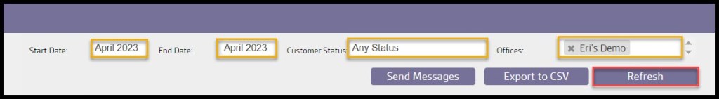 Once Send Messages is selected, a new dialogue box will appear, allowing the user to send a message to all the customers in the report in bulk.