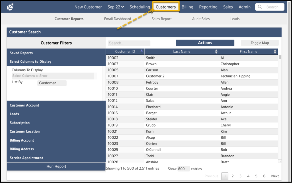 FieldRoutes believes that customers have a right to their own customer data. Therefore it is easy to export this data whenever and as often as desired using the Customers Report.