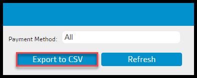 To export a Failed Payment Method Report as a CSV File, select Export to CSV.
