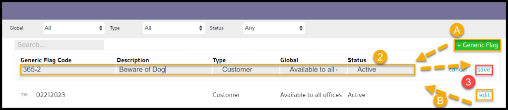 - Generic Flag Code: This is the flag’s code. This will be the flag’s name when selecting it within the Customer Card.