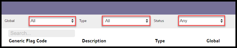 - Status: Display Active, Inactive or All flags.