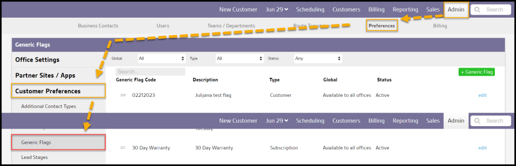 Admin > Preferences > Customer Preferences > Generic Flags.