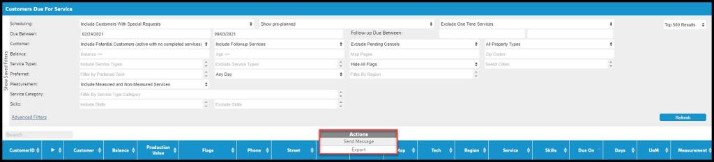 The Customers Due For Service section provides a lot of filters to sort through customers due for a specific service.