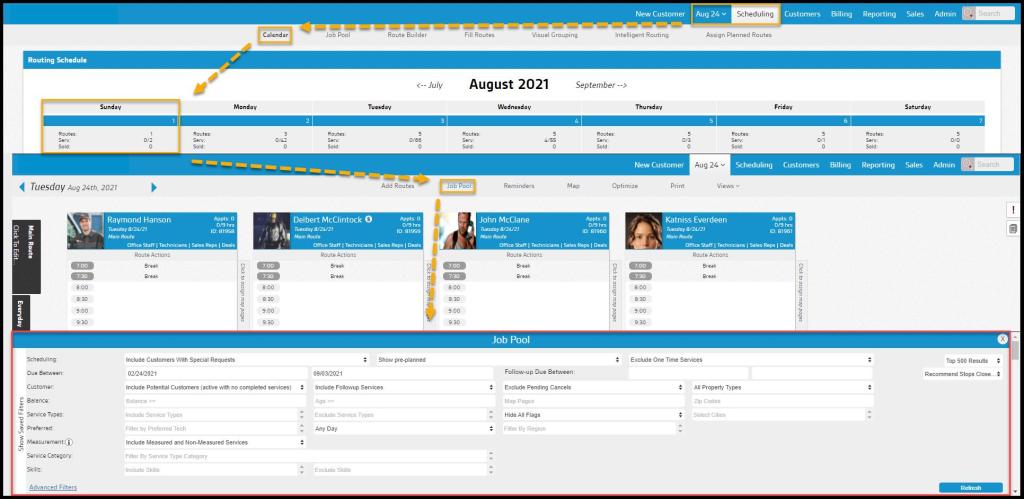The Job Pool allows visibility to all customers due for service during a specific date range.