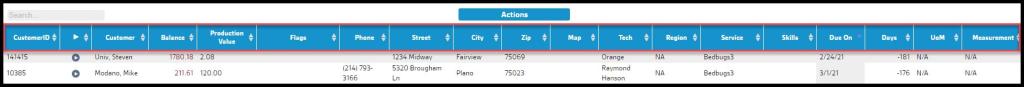- Flags: This column will include any special scheduling flags the customer may have on their account. If anything is input in the Special Scheduling field under the Info tab of the customer card, that information will be displayed here. That information will also show here if the customer has a preferred day or time set under the subscription’s scheduling options.