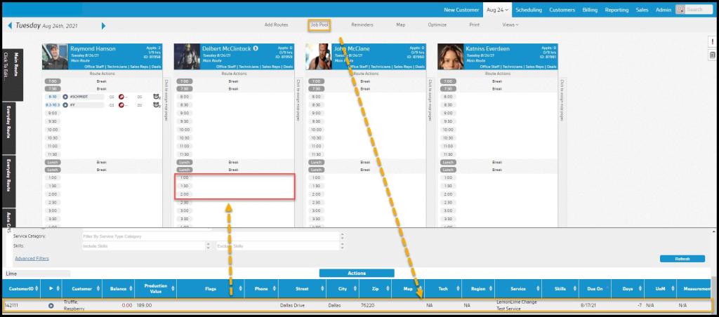 The columns in the Job Pool detail important information regarding a customer’s service, making it easy to schedule customers.