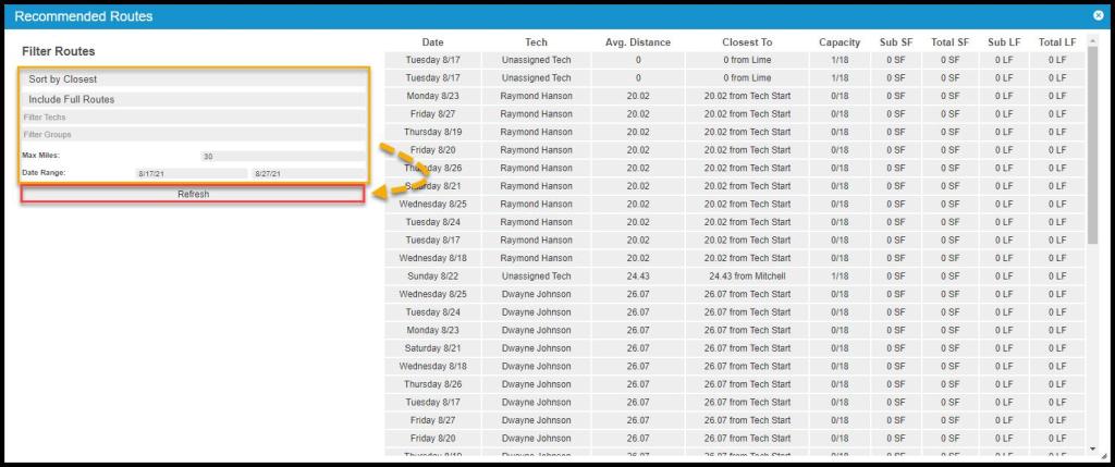 - Filter Techs: Use this to filter routes assigned to specific technicians.
