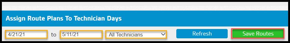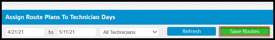 Select Save Routes from the top menu when finished assigning the routes onto all of the technician’s days.