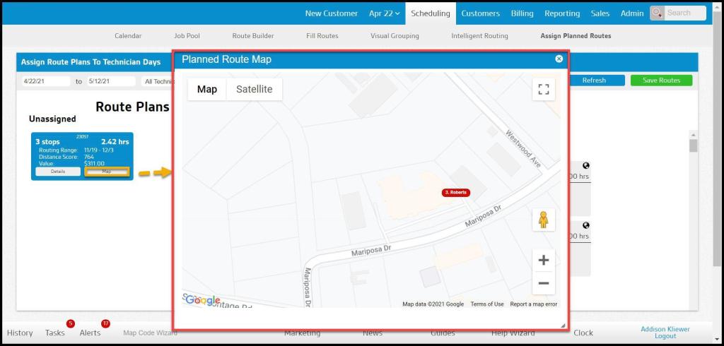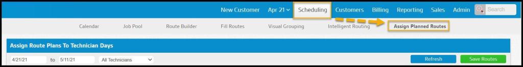 Assign Planned Routes will allow the user to schedule the routes created in Intelligent Routing to your technicians.