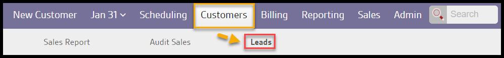 If the Leads report sub-menu is not available under the Customer area, it most often means the Leads feature is not enabled in the system preferences. To turn on the Leads feature, go to: