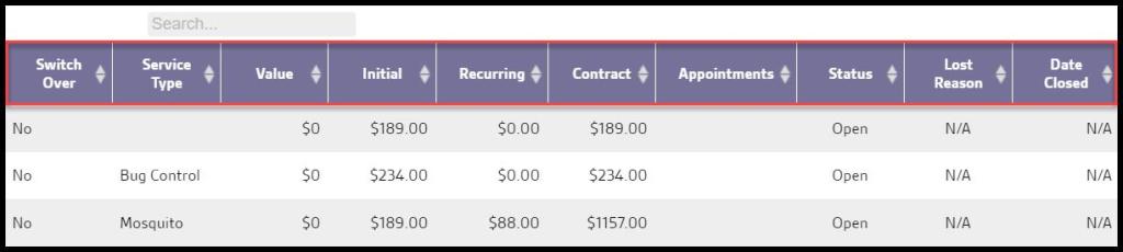 - Service Type: Shows the service type assigned to the lead.
