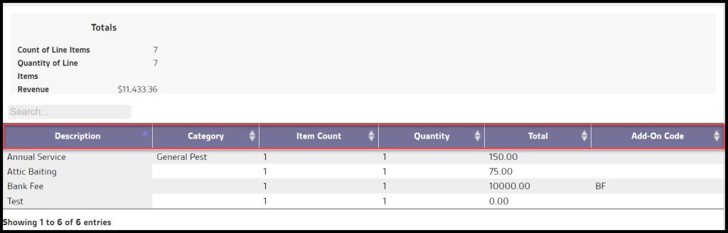 The Line Item Report will allow the user to see which line items (Add-Ons) are used most within a given date range. This report is accrual-based and records ticket and invoice items based on the date the ticket is created, not the date the item was added. It also itemizes charges where the revenue by service types report groups all item charges with the main service of the ticket.