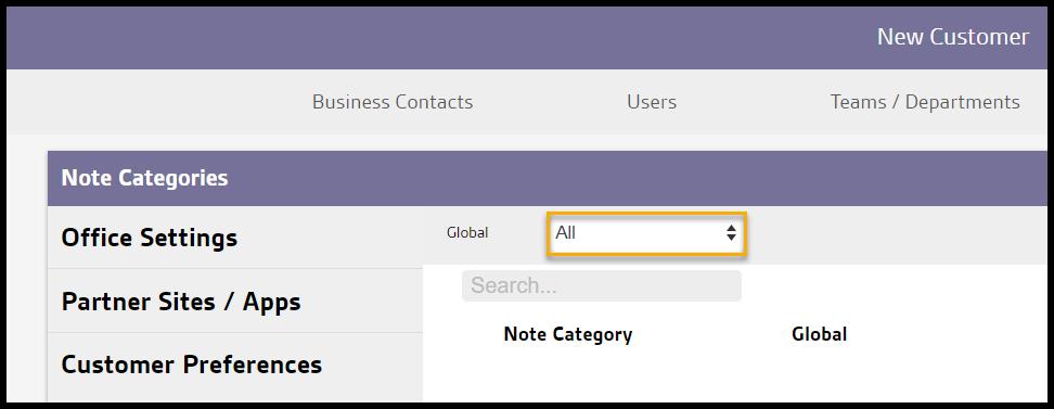- Global: Flag the Note Category to show up for all offices or only specific to the user’s office(s).
