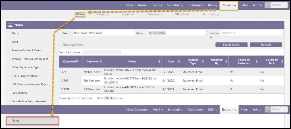 Reporting > Office Reporting > Notes.
