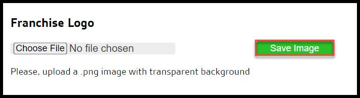A franchise logo can be uploaded to appear on the top right corner of the web application. It is intended for the user’s franchise. The logo must be a .png file and have a transparent background.